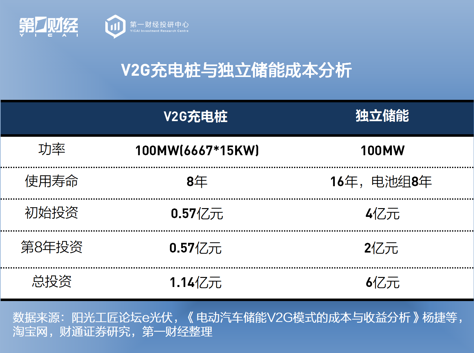 而且,V2G充电桩作为储能设备使用,成本远低于独立储能。财通证券数据显示,V2G充电桩的成本约为相同功率的独立储能的1/5。