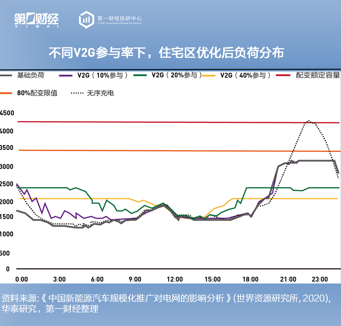 例如在削峰填谷环节,V2G效果明显。据悉在住宅区场景中,当10%的电动汽车参与V2G 时,削峰填谷效果与50%的电动汽车参与有序充电(V1G)的效果相当,且本地配变无须增容。